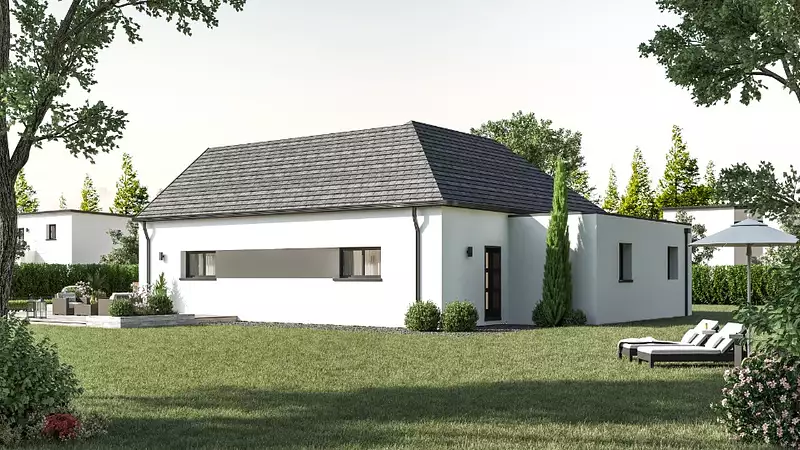 Proche de Brest - À Guipavas (29490), maison neuve en vente de 5 pièces, 80 m² sur 398 m² de terrain. Son intérieur compte trois chambres, une cuisine et deux salles de bains.