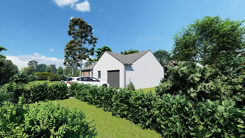 Prix avec assurance dommages-ouvrage comprise, hors VRD, terrain non viabilisé, frais de notaire non compris, frais divers non compris. Terrain sélectionné et vu pour vous sous réserve de disponibilité et au prix indiqué par notre partenaire foncier. Conditions et visuels non contractuels.