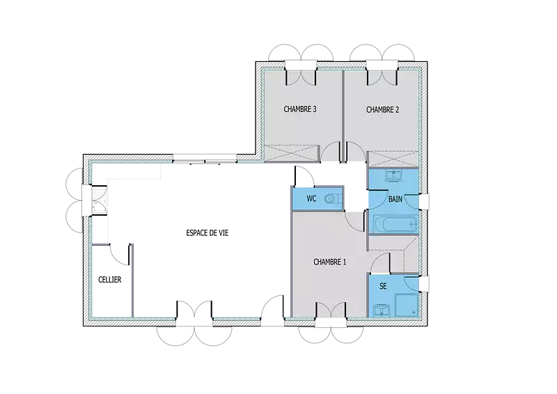 Cette maison de plain-pied en L, fonctionnelle et spacieuse vous propose un bel espace de vie lumineux et traversant. Sa cuisine est ouverte sur le séjour et a un accès direct au cellier. Son espace nuit est composé de trois belles chambres dont une suite parentale avec dressing et salle de bain privative, une deuxième salle de bains équipé ainsi que des wc séparésPour vous assurer un confort de vie et conformèment à la RE2025, nous avons chosi un mode de chauffage par PAC + plancher chauffant, volets roulants électriques, Prix hors fourniture et pose : des appareils sanitaires (sauf système de chauffage et d'eau chaude sanitaire), du carrelage et de la faïence, des revêtements de sol dans les chambres. Hors décoration et aménagement intérieur et peinture. Hors raccordements, frais de notaire et dommage ouvrage.
