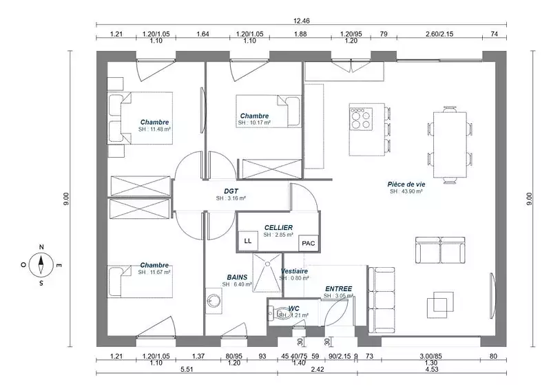 Maion France Confort vous propose cette maison de Plain pied de 93m2 à proximité des axes autoroutiers.