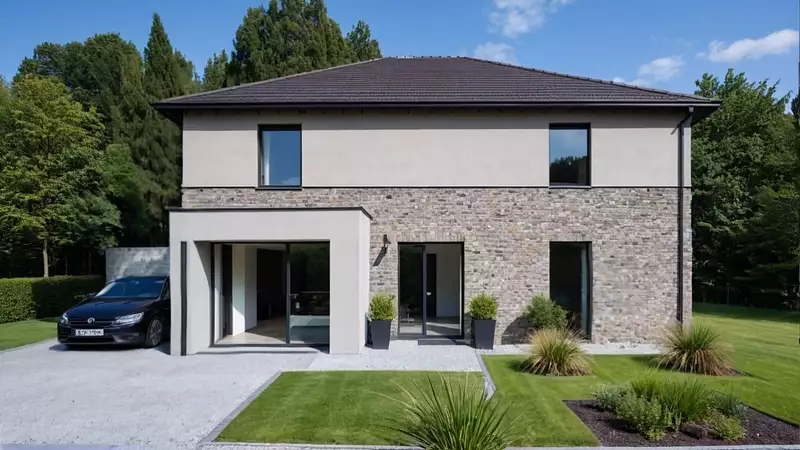 Maisons ARLOGIS vous propose cette maison à étage de 130 m² en briques traditionnelles du Nord et insert enduit.