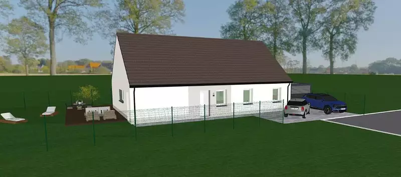 Terrain proposé par un partenaire foncier selon disponibilités et autorisation de publicité au prix de 72 500 €. Hors droit d'enregistrement et frais de notaire. Maison proposée, avec un contrat de construction de maison individuelle, dans le cadre de la loi du 19/12/1990, au prix de 169 000 € (Hors branchements et raccordements, papiers peints, peintures, revêtement de sol dans les chambres, qui sont chiffrés dans les travaux qui restent à charge du client. Tarif modifiable sans préavis). Étiquette énergie : A. Différents modèles disponibles pour ce terrain. Assurances et garanties du constructeur comprises (RC professionnelle, décennale, dommage ouvrage).