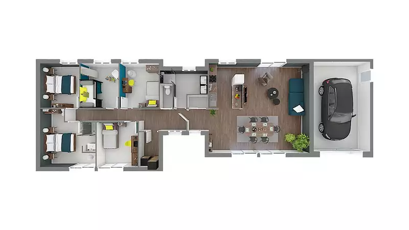 Harmonoise se distingue par son plan en L innovant, offrant une séparation harmonieuse entre les espaces de vie et la partie nuit, pour un quotidien organisé et paisible. Cette maison comprend 4 chambres spacieuses, garantissant intimité et confort pour chaque membre de la famille. Avec un total de 4 pièces, elle est pensée pour répondre aux besoins de vie contemporains, alliant esthétique et praticité.