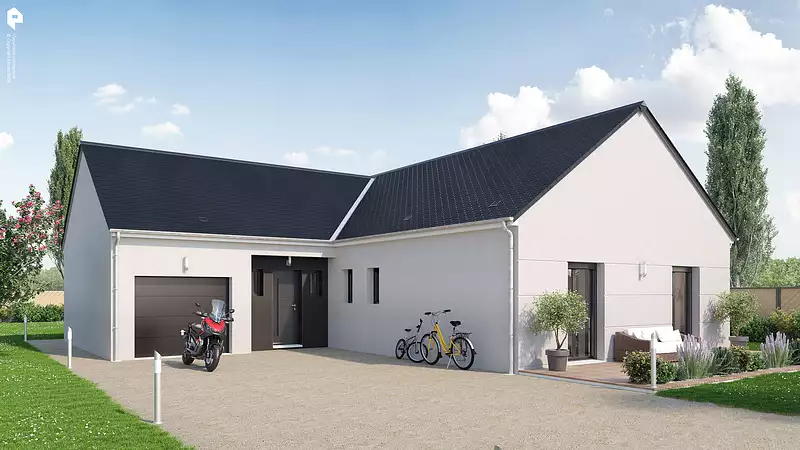 Laissez-vous séduire par l’architecture en L de ce modèle pensé pour allier style et fonctionnalité ! Son espace de vie lumineux avec cuisine ouverte s’ouvre sur l’extérieur, tandis que l’espace nuit accueille 4 chambres, dont une suite parentale avec dressing et salle d’eau privative. Double salle d’eau, cellier, garage intégré : tout y est pour un quotidien fluide. Imaginez-la à votre image et commencez votre projet !. Pour un confort optimal et conforme à la RE2025, cette maison dispose d’une PAC avec plancher chauffant et volets roulants électriques. À noter : Le prix indiqué exclut les revêtements de sol des chambres, la cuisine aménagée, la peinture, la décoration, les raccordements, les frais de notaire et l’assurance dommages-ouvrage. .