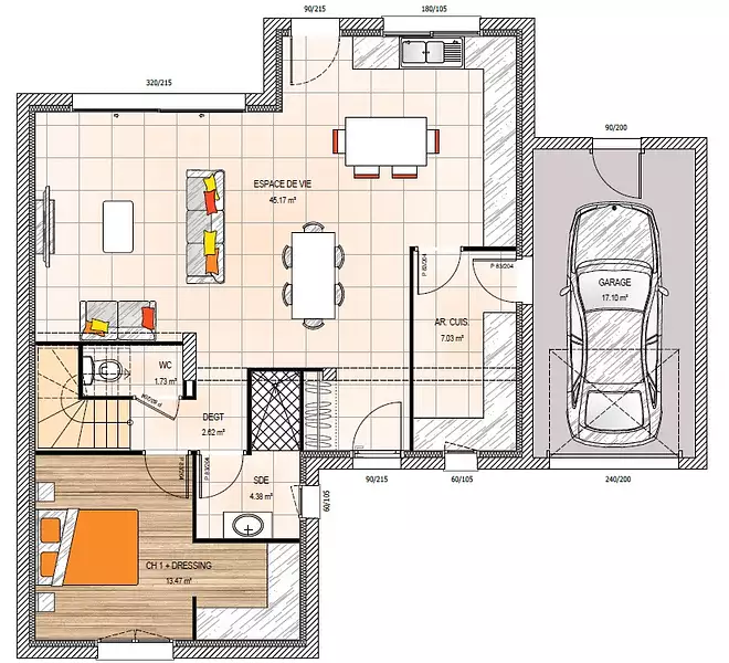 Terrain proposé par un partenaire foncier selon disponibilités et autorisation de publicité au prix de 54 465 €. Hors droit d'enregistrement et frais de notaire. Maison proposée, avec un contrat de construction de maison individuelle, dans le cadre de la loi du 19/12/1990, au prix de 261 035 € (Hors branchements et raccordements, papiers peints, peintures, revêtement de sol dans les chambres, qui sont chiffrés dans les travaux qui restent à charge du client. Tarif modifiable sans préavis). Étiquette énergie : A. Différents modèles disponibles pour ce terrain. Assurances et garanties du constructeur comprises (RC professionnelle, décennale, dommage ouvrage).
