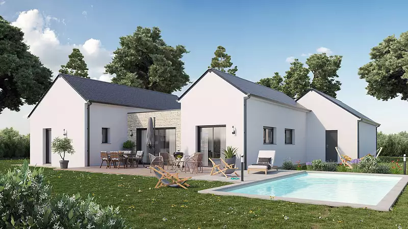 Une maison bien pensée, où chaque espace a sa place . Avec ses 93 m² parfaitement optimisés, cette maison séduit par une configuration fonctionnelle et chaleureuse. Les trois chambres sont regroupées côté nuit, dont une avec dressing pour plus de confort, et deux pièces d’eau (salle de bain + salle d’eau) pour une vraie praticité au quotidien. L’espace de vie central, lumineux et ouvert sur l’extérieur, occupe une place généreuse au cœur de la maison. Un cellier malin, un WC indépendant et un garage complètent ce plan intelligent, pensé pour faciliter la vie de toute la famille. Un modèle compact, mais complet, à personnaliser selon vos envies. Pour un confort optimal et conforme à la RE2025, cette maison dispose d’une PAC avec plancher chauffant et volets roulants électriques. À noter : Le prix indiqué exclut les revêtements de sol des chambres, la cuisine aménagée, la peinture, la décoration, les raccordements, les frais de notaire et l’assurance dommages-ouvrage. Contactez-nous dès aujourd’hui pour concrétiser votre projet et façonner votre futur chez-vous !.