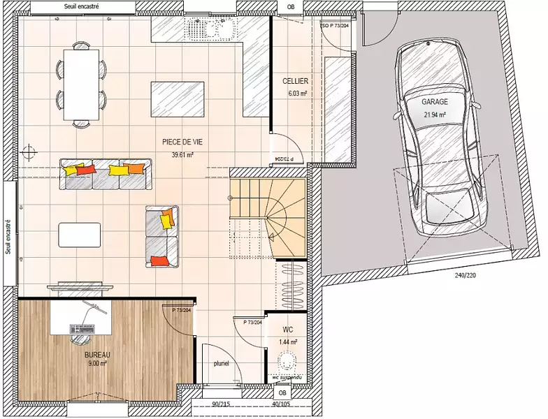 Proposée par MAISONS BERNARD JAMBERT – 6 pièces - 4 chambres - terrain 539 m²