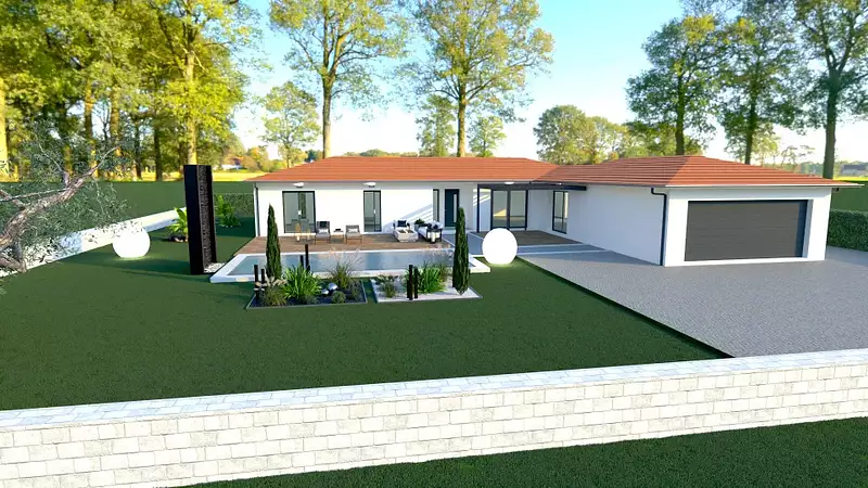 Terrain proposé par un partenaire foncier selon disponibilités et autorisation de publicité au prix de 78 500 €. Hors droit d'enregistrement et frais de notaire. Maison proposée, avec un contrat de construction de maison individuelle, dans le cadre de la loi du 19/12/1990, au prix de 309 500 € (Hors branchements et raccordements, papiers peints, peintures, revêtement de sol dans les chambres, qui sont chiffrés dans les travaux qui restent à charge du client. Tarif modifiable sans préavis). Étiquette énergie : A. Différents modèles disponibles pour ce terrain. Assurances et garanties du constructeur comprises (RC professionnelle, décennale, dommage ouvrage).