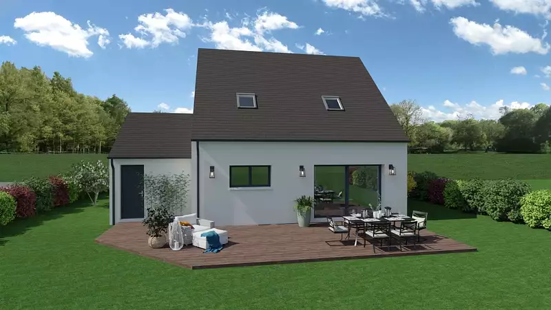Terrain proposé par un partenaire foncier selon disponibilités et autorisation de publicité au prix de 180 000 €. Hors droit d'enregistrement et frais de notaire. Maison proposée, avec un contrat de construction de maison individuelle, dans le cadre de la loi du 19/12/1990, au prix de 171 000 € (Hors branchements et raccordements, papiers peints, peintures, revêtement de sol dans les chambres, qui sont chiffrés dans les travaux qui restent à charge du client. Tarif modifiable sans préavis). Étiquette énergie : A. Différents modèles disponibles pour ce terrain. Assurances et garanties du constructeur comprises (RC professionnelle, décennale, dommage ouvrage).