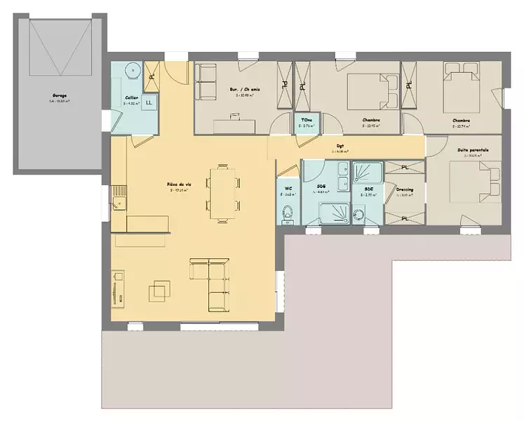 Proposée par MAISONS BRUNO PETIT GHPA – 5 pièces - 4 chambres - terrain 1 042 m²