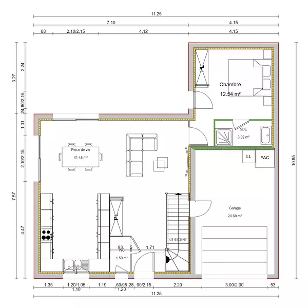 - Surface garage : 20 m²