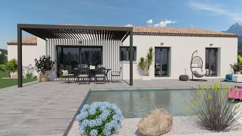 D'architecture contemporaine, cette maison de 120m² est composée d'un espace de vie de 50,61 m² avec cuisine ouverte sur un grand salon, salle à manger. Elle possède aussi un espace nuit de 4 chambres et d'une salle de bains, dont une suite parentale de 18,41 m² avec salle d'eau et dressing. Lumineuse et spacieuse cette maison de plain-pied répond à la Réglementation environnementale RE2020. Pour plus de confort, vous trouverez également un garage, totalement accessible de la maison.