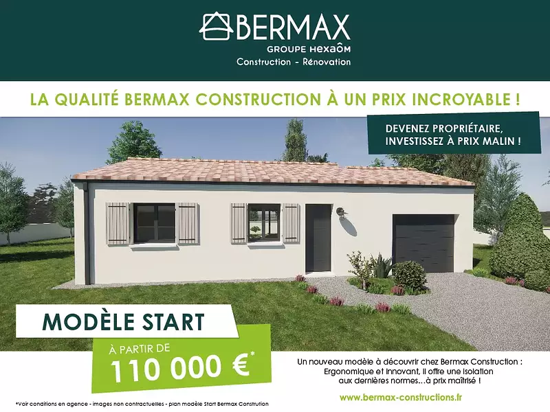 Proposée par BERMAX – 3 pièces - 2 chambres - terrain 850 m²
