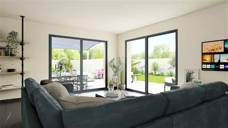 Votre salon, baigné de lumière naturelle grâce à de larges baies vitrées, s'ouvre sur un jardin où la nature devient une partie intégrante de votre quotidien. C'est l'endroit parfait pour se détendre et profiter de chaque instant.