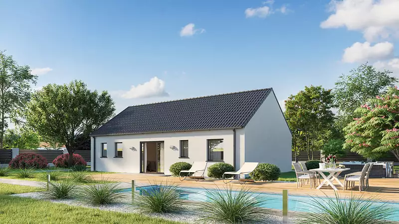 La Topaze se fait remarquer par son porche d'entrée accueillant et son garage intégré, des caractéristiques qui allient fonctionnalité et esthétique. Son plan en L n'est pas seulement un choix de design; il permet également une séparation naturelle des espaces de vie, créant ainsi une harmonie parfaite entre les différentes zones de la maison.