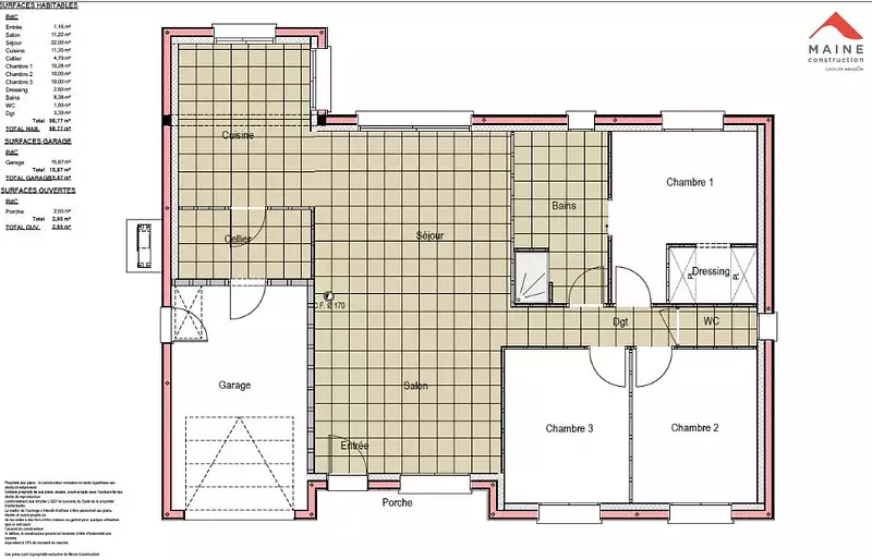 Proposée par MAINE CONSTRUCTION – 4 pièces - 3 chambres - terrain 416 m²