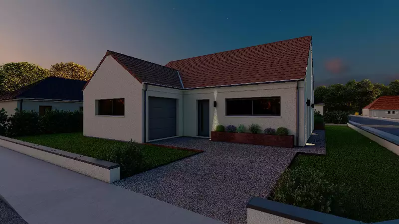 Proche d'Orléans - En vente à La Ferté-Saint-Aubin (45240) : maison neuve 4 pièces de 90 m² et de 372 m² de terrain. Conçue de plain-pied, elle comporte trois chambres, une cuisine et une salle de bains.