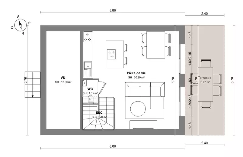 - Surface : 80 m²