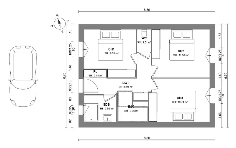 - Chambres : 3