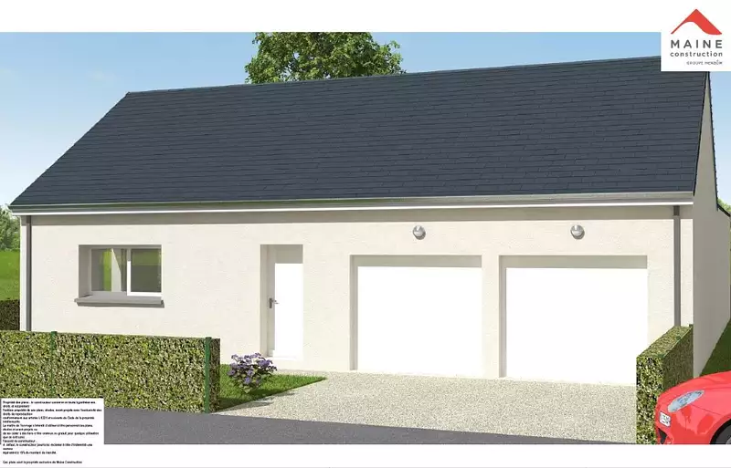 Terrain proposé par un partenaire foncier selon disponibilités et autorisation de publicité au prix de 52 500 €. Hors droit d'enregistrement et frais de notaire. Terrain + Maison proposés au prix de 226 500 € (Hors branchements et raccordements, papiers peints, peintures, revêtement de sol dans les chambres. Tarif modifiable sans préavis). Etiquette énergie : A. Différents modèles disponibles pour ce terrain. Assurances et garanties du constructeur (RC professionnelle, décennale, dommage ouvrage, garantie de remboursement de l'acompte, livraison à prix et délai convenu) : https://www.maine-construction.fr/mentions-legales/. HEXAOM Services est enregistré auprès de l'ORIAS en tant que Courtier en financement, Niveau 1, sous le numéro 14001345.
