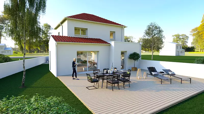 Le modèle est totalement adaptable à vos envies et besoins et personnalisable grâce à de nombreuses options de finition. Nous consulter pour plus d'informations. Le prix affiché comprend le coût du terrain et de la construction hors frais de notaire et frais annexes. Les annonces de terrains constructibles sont sélectionnées auprès de nos partenaires fonciers selon disponibilités et autorisation de publicité en vue de construire une maison neuve avec un Contrat de Construction de Maison Individuelle dans le cadre de la loi du 19/12/1990. Ces derniers sont soit des professionnels dûment habilités à la transaction immobilière, soit des particuliers. Les terrains sélectionnés sont disponibles à la date de la première parution de l'annonce. En aucun cas Maisons ARLOGIS ou ses collaborateurs ne sont propriétaires des terrains, ne jouent un rôle d'intermédiation ou de négociation sur la transaction et ne participent à la vente. Prix indiqués par nos partenaires fonciers. Visuel d'illustration. Le modèle est totalement adaptable à vos envies et besoins et personnalisable grâce à de nombreuses options de finition. Nous consulter pour plus d’informations. Le prix affiché comprend le coût du terrain et de la construction hors frais de notaire et taxes. Les annonces de terrains constructibles sont sélectionnées auprès de nos partenaires fonciers selon disponibilités et autorisation de publicité en vue de construire une maison neuve avec un Contrat de Construction de Maison Individuelle dans le cadre de la loi du 19/12/1990. Ces derniers sont soit des professionnels dûment habilités à la transaction immobilière, soit des particuliers. Les terrains sélectionnés sont disponibles à la date de la première parution de l’annonce. En aucun cas Maisons ARLOGIS ou ses collaborateurs ne sont propriétaires des terrains, ne jouent un rôle d’intermédiation ou de négociation sur la transaction et ne participent à la vente. Prix indiqués par nos partenaires fonciers.