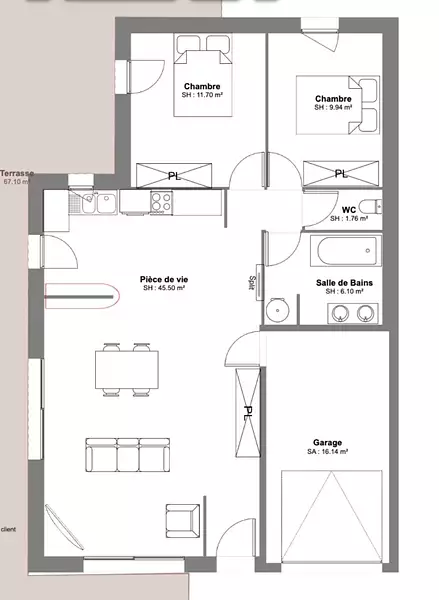 un futur projet de construction sur un terrain de 250m2 plein SUD, de 2 chambres, d'une salle de bain confortable, un garage et une belle pièce de vie agréable,