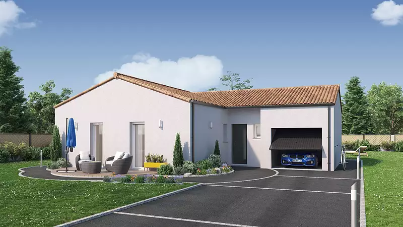 Spacieuse et fonctionnelle, cette maison de plain-pied vous propose un bel espace de vie lumineux de 46 m² environ , avec une grande baie vitrée donnant sur le jardin. Sa cuisine est ouverte sur le séjour et dispose d'un accès direct au cellier, et au garage intégré. Son espace nuit est composé de trois chambres avec rangements, d'une salle de bains et de wc séparés. Pour vous assurer un confort de vie et conformément à la RE2025, nous avons choisi un mode de chauffage par PAC + plancher chauffant, volets roulants électriques, Prix hors fourniture et pose : des appareils sanitaires (sauf système de chauffage et d'eau chaude sanitaire), du carrelage et de la faïence, des revêtements de sol dans les chambres. Hors décoration et aménagement intérieur et peinture. Hors raccordements, frais de notaire et dommage ouvrage.