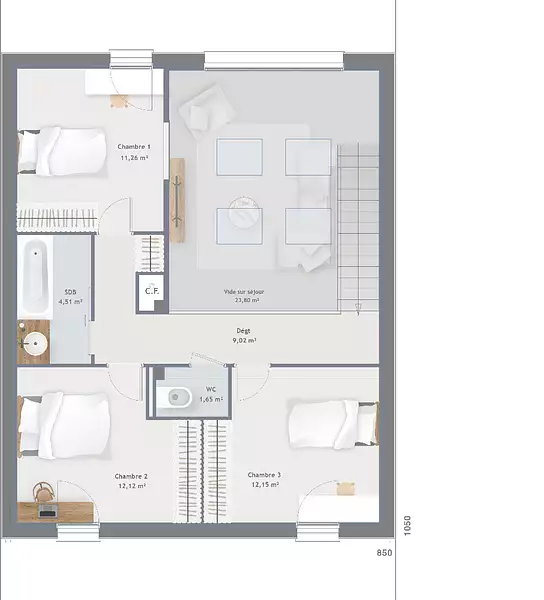 Proposée par MAISONS FRANCE CONFORT – 6 pièces - 4 chambres - terrain 483 m²
