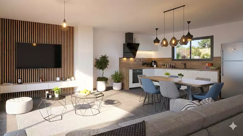 Charmante maison de plain-pied idéale pour une première acquisition, offrant 2 chambres confortables et une grande pièce de vie lumineuse, véritable cœur de foyer. Un agencement fonctionnel et moderne, pensé pour le confort quotidien et la convivialité. Pour un confort optimal et conforme à la RE2025, cette maison dispose d'une PAC avec plancher chauffant et volets roulants électriques. A noter : le prix indiqué exclut les revêtements de sol des chambres, la cuisine aménagée, la peinture, la décoration, le carport, les raccordements, les frais de notaire, l'adaptation au sol et l'assurance dommages ouvrage.