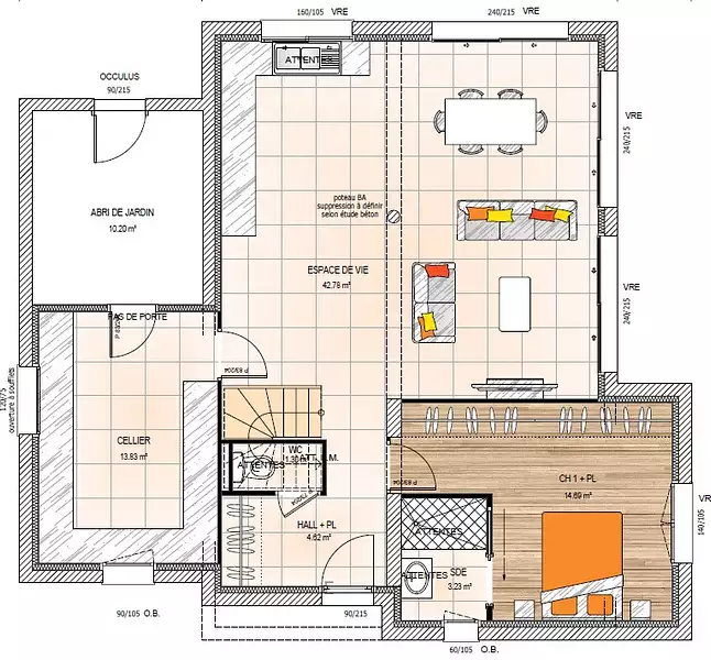 Proposée par MAISONS BERNARD JAMBERT – 6 pièces - 4 chambres - terrain 558 m²