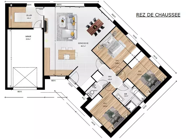 Proposée par MAISONS BERNARD JAMBERT – 5 pièces - 3 chambres - terrain 431 m²
