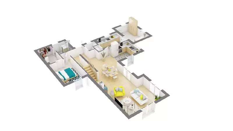 À deux pas de l’Océan, les places sont chères et il est difficile de trouver une grande parcelle pour construire. Ce modèle a donc été conçu pour s’adapter à l’étroitesse du terrain, tout en bénéficiant pleinement de l’espace disponible. Construite dans la plus pure tradition avec ses différentes parties accolées, c’est une maison qui offre une surface habitable de plus de 122 m².