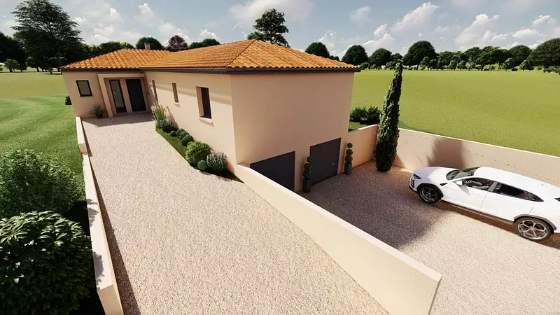 *** Visuel d'illustration. Le modèle est totalement adaptable à vos envies et besoins et personnalisable grâce à de nombreuses options de finition. Nous consulter pour plus d’informations. Le prix affiché comprend le coût du terrain et de la construction hors frais de notaire et taxes. Les annonces de terrains constructibles sont sélectionnées auprès de nos partenaires fonciers selon disponibilités et autorisation de publicité en vue de construire une maison neuve avec un Contrat de Construction de Maison Individuelle dans le cadre de la loi du 19/12/1990. Ces derniers sont soit des professionnels dûment habilités à la transaction immobilière, soit des particuliers. Les terrains sélectionnés sont disponibles à la date de la première parution de l’annonce. En aucun cas Maisons ARLOGIS ou ses collaborateurs ne sont propriétaires des terrains, ne jouent un rôle d’intermédiation ou de négociation sur la transaction et ne participent à la vente. Prix indiqués par nos partenaires fonciers.