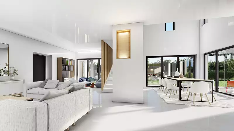 La maison, avec une surface habitable de 170 m², promet des volumes généreux et une belle luminosité grâce à son design contemporain. Composée de 6 pièces, dont 4 chambres, elle offre un cadre de vie idéal pour toute la famille. Le vaste salon de 70 m², conçu pour favoriser les moments de partage et de convivialité, est le cœur de cette demeure. Vous bénéficierez également d'un garage.