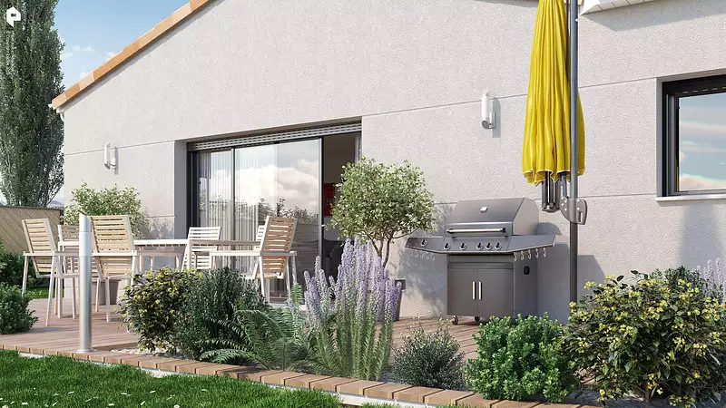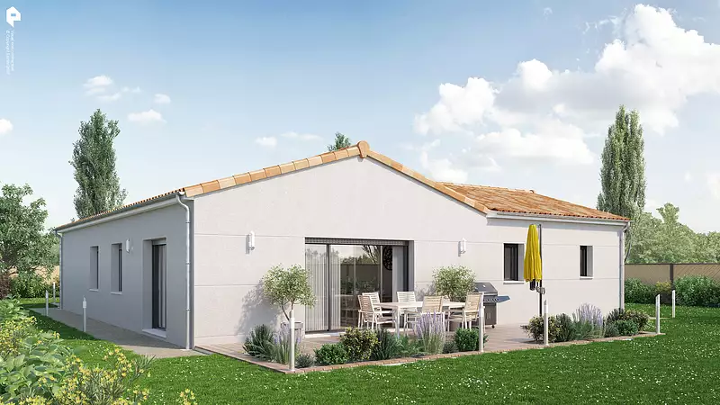 Laissez-vous séduire par l’architecture en L de ce modèle pensé pour allier style et fonctionnalité ! Son espace de vie lumineux avec cuisine ouverte s’ouvre sur l’extérieur, tandis que l’espace nuit accueille 4 chambres, dont une suite parentale avec dressing et salle d’eau privative. Double salle d’eau, cellier, garage intégré : tout y est pour un quotidien fluide. Imaginez-la à votre image et commencez votre projet !. Pour un confort optimal et conforme à la RE2025, cette maison dispose d’une PAC avec plancher chauffant et volets roulants électriques. À noter : Le prix indiqué exclut les revêtements de sol des chambres, la cuisine aménagée, la peinture, la décoration, les raccordements, les frais de notaire et l’assurance dommages-ouvrage. .