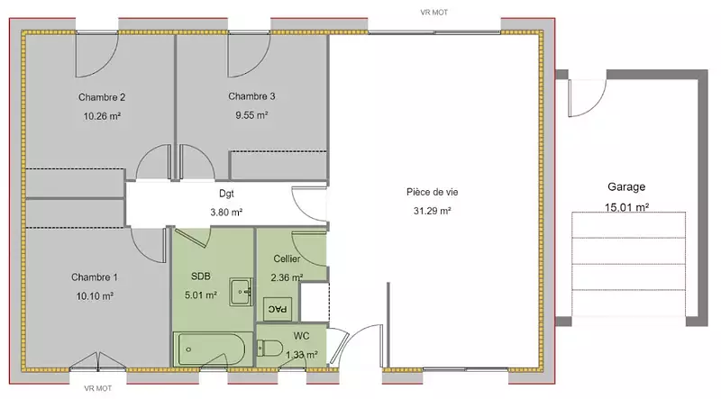 Proposée par MAISONS FRANCE CONFORT – 3 pièces - 3 chambres - terrain 2 720 m²