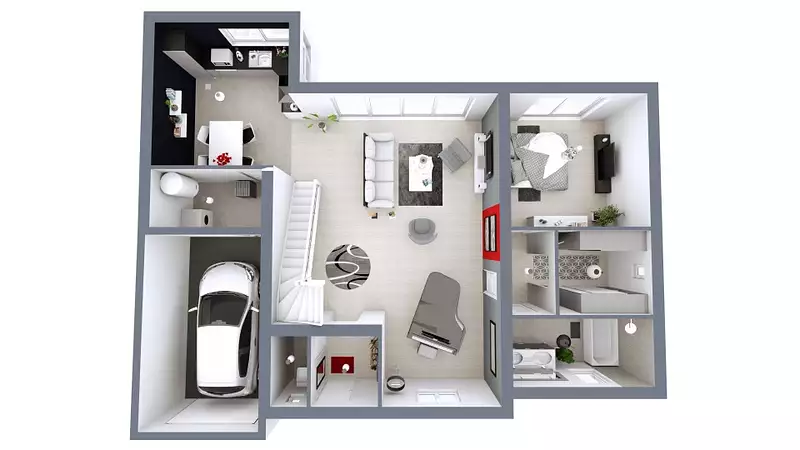 Idée de réalisation en modèle prêt à décorer sur l'un de nos terrains partenaires, sous réserve de disponibilités. Voir détails en agence.