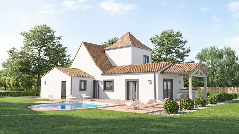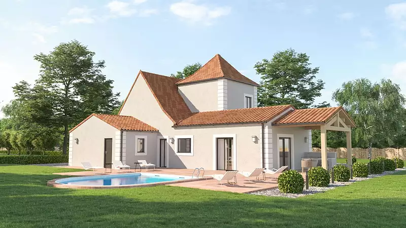 Sur ce terrain, nous vous proposons cette maison neuve : le modèle Domme, parfait pour vous qui aimez la tradition périgourdine. Vous rêvez d’une magnifique maison typique du Périgord ? Ce modèle va vous ravir. C’est une superbe demeure qui vous rendra fiers et vous offrira un confort de vie extraordinaire.