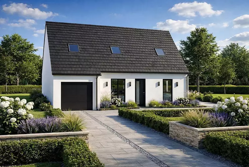 La Focus EVO se distingue par son concept évolutif, alliant une maison neuve prête à vivre et une maison prête à finir. Livrée avec 73 m² habitables, elle est conçue pour évoluer avec vos besoins futurs. Grâce à ses combles aménageables, vous pouvez facilement augmenter votre surface habitable à 110 m², ajoutant ainsi deux chambres supplémentaires et une salle de bain, pour un total de 4 chambres et 2 salles de bains.