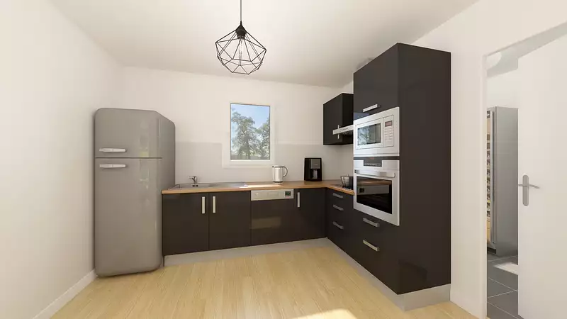 Agréable et lumineuse, cette maison de plain-pied vous propose une cuisine ouverte sur un vaste séjour traversant de 47 m² environ. L'accès direct cuisine, cellier et garage facilite l'habitabilité de cette maison. L'espace nuit est composé de deux belles chambres avec rangement, d'une salle de bains et des wc séparés. Ses jeux d'enduits personnalisables sauront vous séduire. . Pour vous assurer un confort de vie et conformément à la RE2025, nous avons choisi un mode de chauffage par PAC + plancher chauffant, volets roulants électriques. Prix hors fourniture et pose : des appareils sanitaires (sauf système de chauffage et d'eau chaude sanitaire), du carrelage et de la faïence, des revêtements de sol dans les chambres. Hors décoration et aménagement intérieur et peinture. Hors raccordements, frais de notaire et dommage ouvrage.