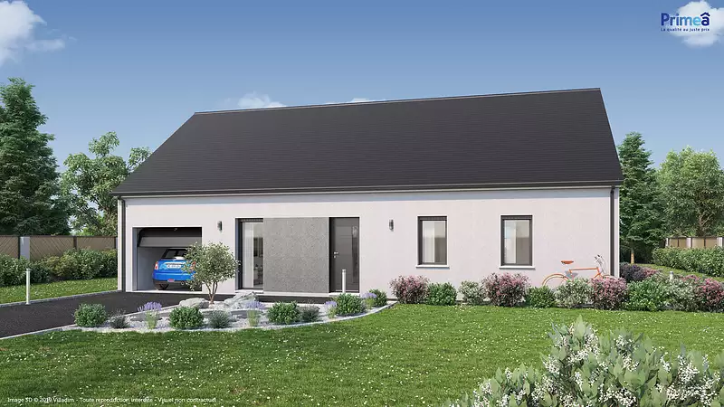 Maison rectangulaire de plain-pied de plus de 100 m² habitables qui vous séduira par son espace de vie traversant baigné de lumière grâce à ses ouvertures, un cellier et un garage accessible de la cuisine ouverte. Pour l’espace nuit, 4 chambres, une salle de bains avec douche et baignoire, un wc séparé. Pour vous assurer un confort de vie et conformément à la RE2025, nous avons choisi un mode de chauffage par PAC + plancher chauffant, volets roulants électriques. Prix hors fourniture et pose : des appareils sanitaires (sauf système de chauffage et d'eau chaude sanitaire), du carrelage et de la faïence, des revêtements de sol dans les chambres. Hors décoration et aménagement intérieur et peinture. Hors raccordements, frais de notaire et dommage ouvrage.