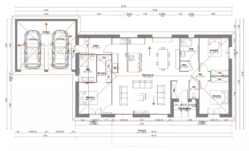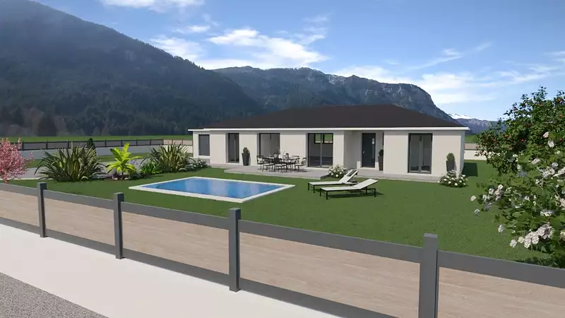 Cette maison de plein pied de 115m2 propose une distribution optimisée et des volumes généreux pour répondre aux besoins des familles modernes.