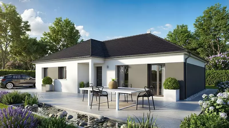 La Mézière se distingue par son plan en L, disponible en version 2 pans ou 4 pans, offrant ainsi une grande flexibilité pour s'adapter à vos besoins et à vos envies. Véritable maison sur mesure, elle séduit par ses nombreuses versions et options, permettant de créer un espace de vie unique et personnalisé.