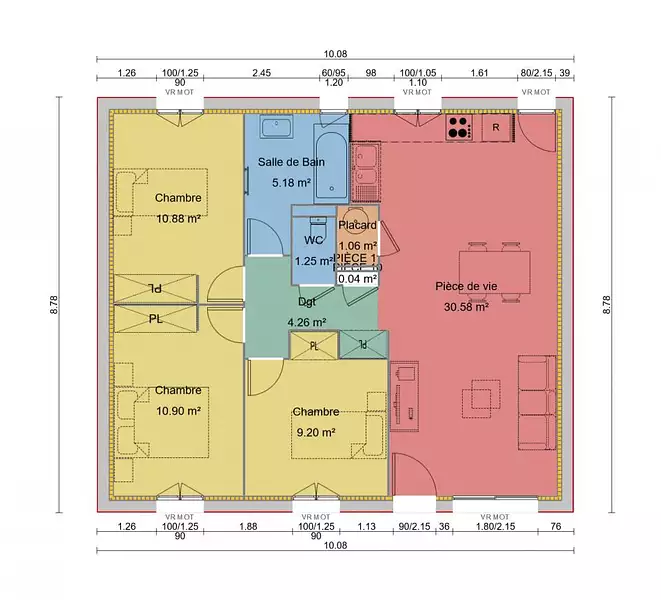 Proposée par MAISONS FRANCE CONFORT – 4 pièces - 3 chambres - terrain 376 m²