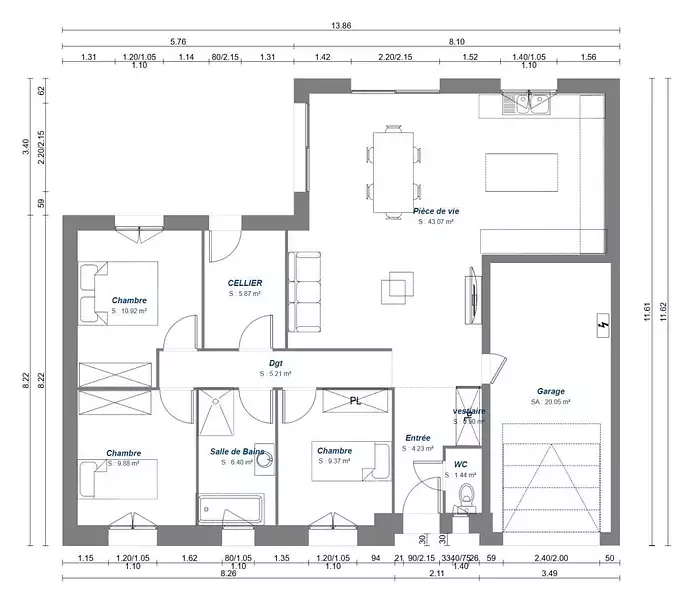 Cette maison propose de beaux volumes et se compose de 3 chambres, d'une pièce de vie ouverte et lumineuse de 43m2, une salle de bains, un cellier, une entrée avec WC et vestiaire, le plus de cette maison un garage de 20m2