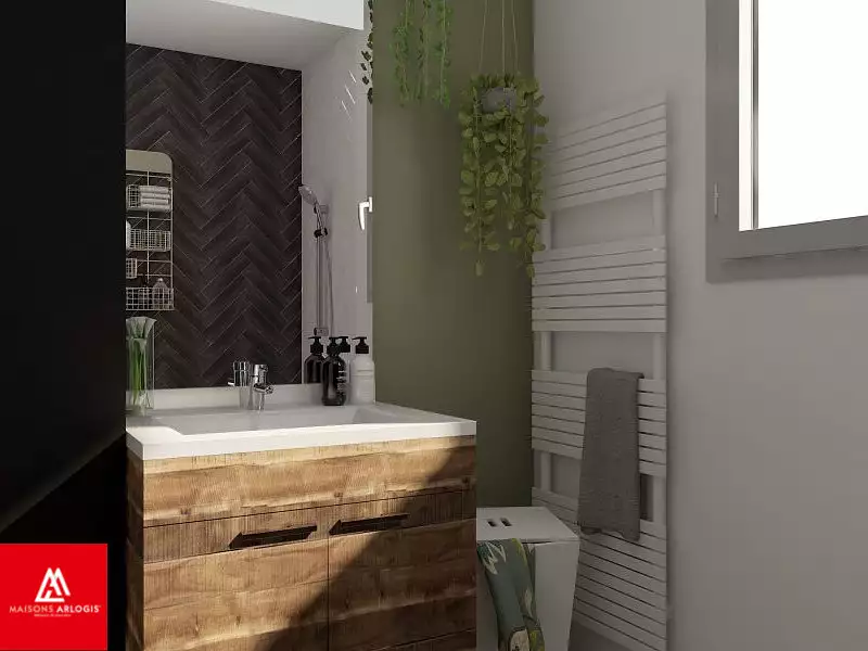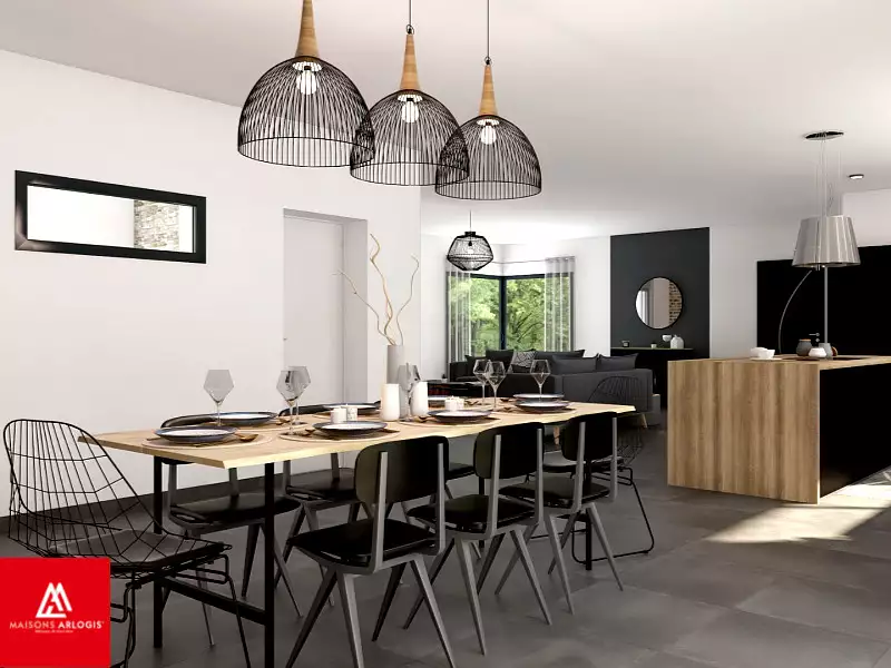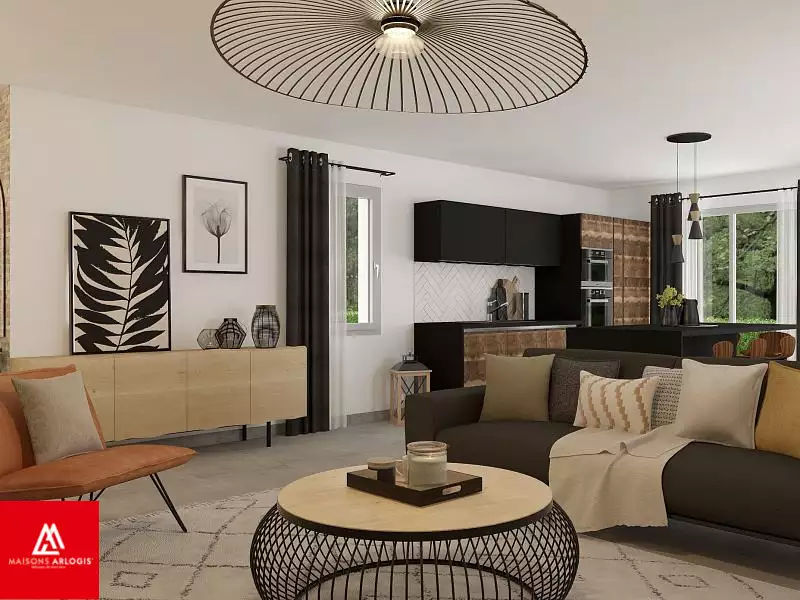 ****************************************************************** Visuel d'illustration. Le modèle est totalement adaptable à vos envies et besoins et personnalisable grâce à de nombreuses options de finition. Nous consulter pour plus d’informations. Le prix affiché comprend le coût du terrain et de la construction hors frais de notaire et taxes. Les annonces de terrains constructibles sont sélectionnées auprès de nos partenaires fonciers selon disponibilités et autorisation de publicité en vue de construire une maison neuve avec un Contrat de Construction de Maison Individuelle dans le cadre de la loi du 19/12/1990. Ces derniers sont soit des professionnels dûment habilités à la transaction immobilière, soit des particuliers. Les terrains sélectionnés sont disponibles à la date de la première parution de l’annonce. En aucun cas Maisons ARLOGIS ou ses collaborateurs ne sont propriétaires des terrains, ne jouent un rôle d’intermédiation ou de négociation sur la transaction et ne participent à la vente. Prix indiqués par nos partenaires fonciers.