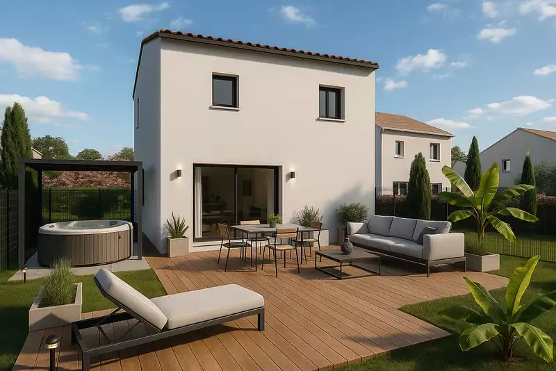 À Le Cailar (30740), ce projet terrain + maison s’inscrit dans un lotissement bien situé, à proximité immédiate des écoles, des commerces, des services de proximité et des transports, offrant un quotidien simple et fonctionnel. Il prévoit la construction d’une maison contemporaine à étage de 70 m², implantée sur un terrain viabilisé de 220 m², parfaitement adaptée à un couple, un premier achat ou un projet de résidence principale compacte. L’agencement intérieur propose un espace de vie ouvert lumineux, deux chambres, une salle de bains, un toilette et un cellier, avec une organisation optimisée pour maximiser chaque mètre carré. Proposé par Maisons Bati-France, ce projet allie accessibilité, modernité et emplacement pratique, dans une commune appréciée pour son cadre de vie et sa proximité avec les pôles environnants. Contactez Manon COMPAN Nous avons sélectionné ce terrain en partenariat avec nos aménageurs fonciers, dans le cadre d’un projet avec Maisons Bati-France.