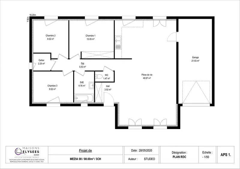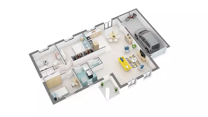 Notre maison Mezia est proposée dans 6 plans différents afin de vous permettre de construire une maison sur-mesure au prix d'une maison catalogue. Parmi les caractéristiques principales, vous trouverez un garage intégré, parfait pour protéger votre véhicule et offrir un espace de rangement supplémentaire.