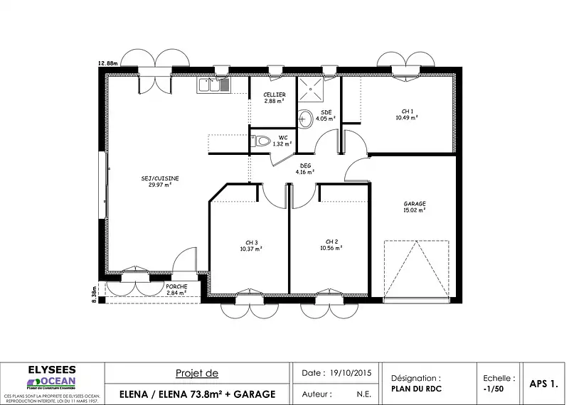 Proposée par ELYSEES OCEAN – 4 pièces - 3 chambres - terrain 483 m²