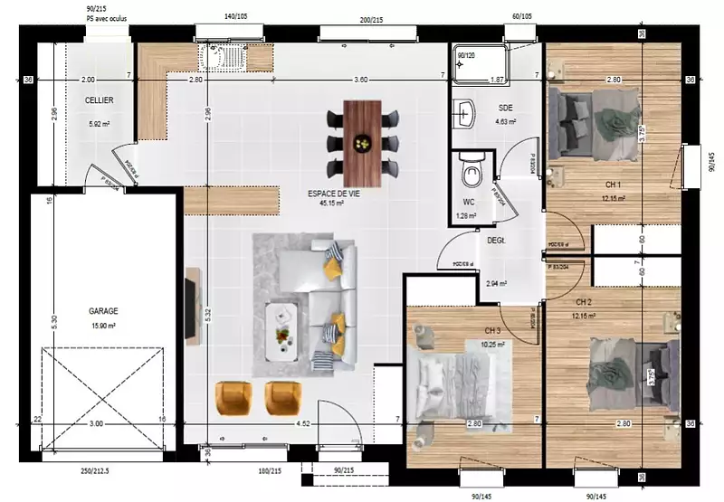 Proposée par MAISONS BERNARD JAMBERT – 5 pièces - 3 chambres - terrain 665 m²